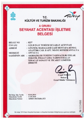 НАША ТУРОПЕРАТОРСКАЯ ЛИЦЕНЗИЯ ОТ МИНИСТЕРСТВА КУЛЬТУРЫ И ТУРИЗМА ТУРЦИИ